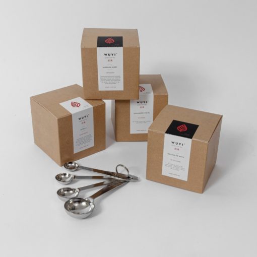 Caja kraft de cartón rígido y alta resistencia, personalizable para selección de 3 tés (60g) en tubos de vidrio. Acompañada de un set de teaspoons de varias medidas: 1,25 ml – 2,5 ml – 5 ml – 15 ml.